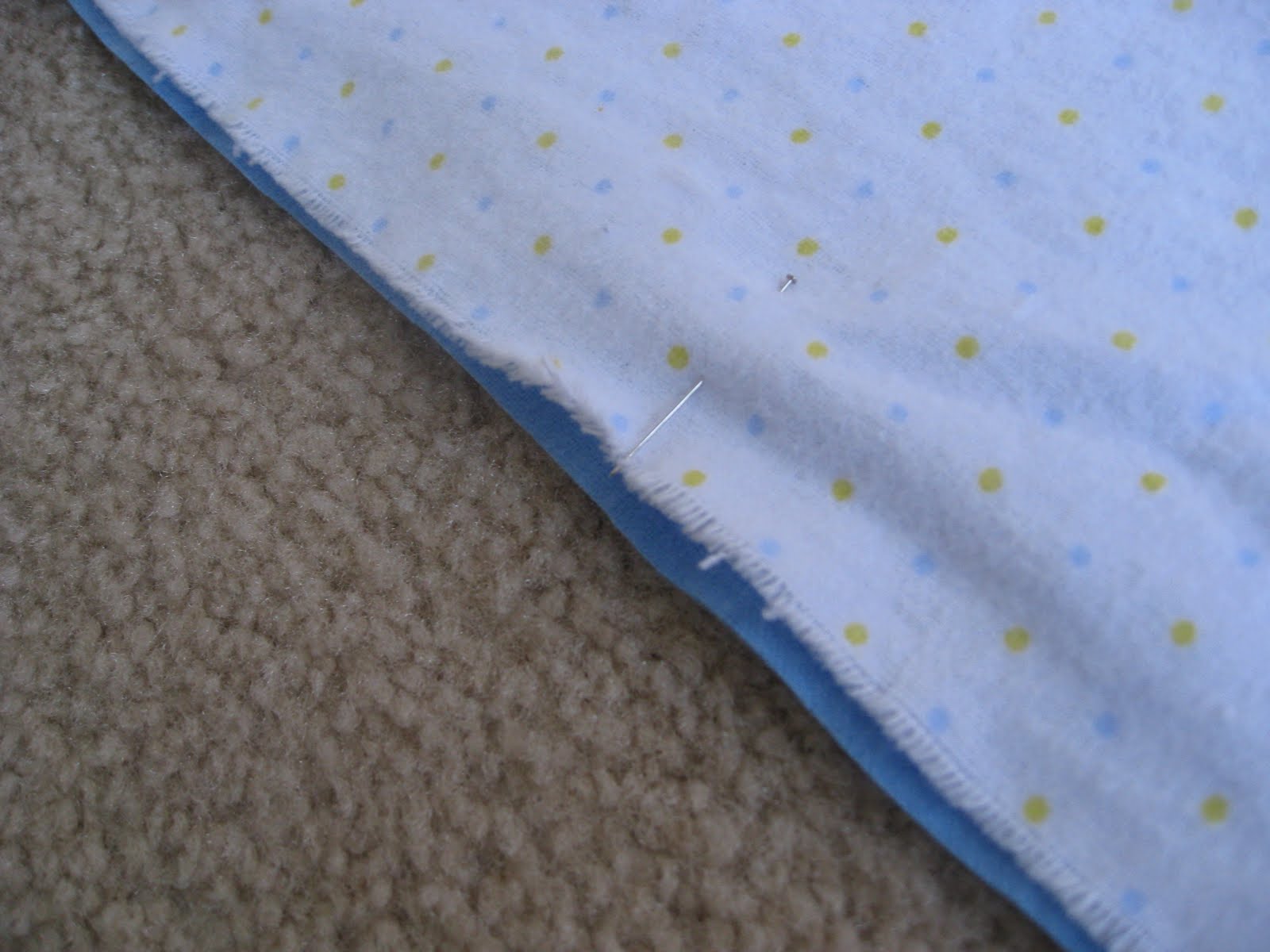 Stitch around the perimeter. I stitched 7/8" in from the side. Your machine probably has lines etched into it to show how far you are from the edge. When stitching around the perimeter of the blanket, make a square corner. (Pick up your machine's presser foot and turn the fabric 90 degrees.)