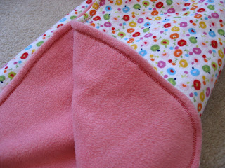 I had found this cute apple fabric on clearance and had to get it b/c it is pink and red. I then found the pink fuzzy backing on sale, too. This probably cost me about $5 to make!