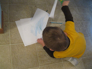 It is a rattle, too. I put rice in this little plastic container to shake. I tried to find an old plastic Easter egg to use, but came up empty handed on the Easter egg. I guess I should save more stuff.